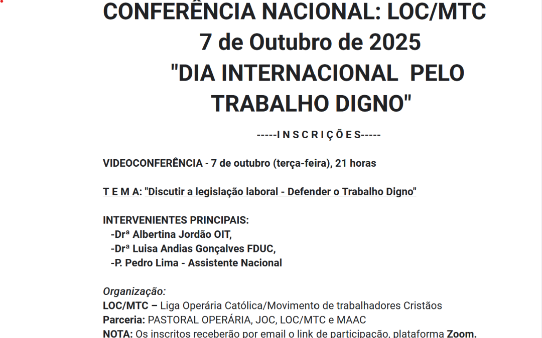 Dia Internacional pelo Trabalho digno – 7 Outubro 2025 Out 4, 2025 | Notícias, Uncategorized Post Views: 183