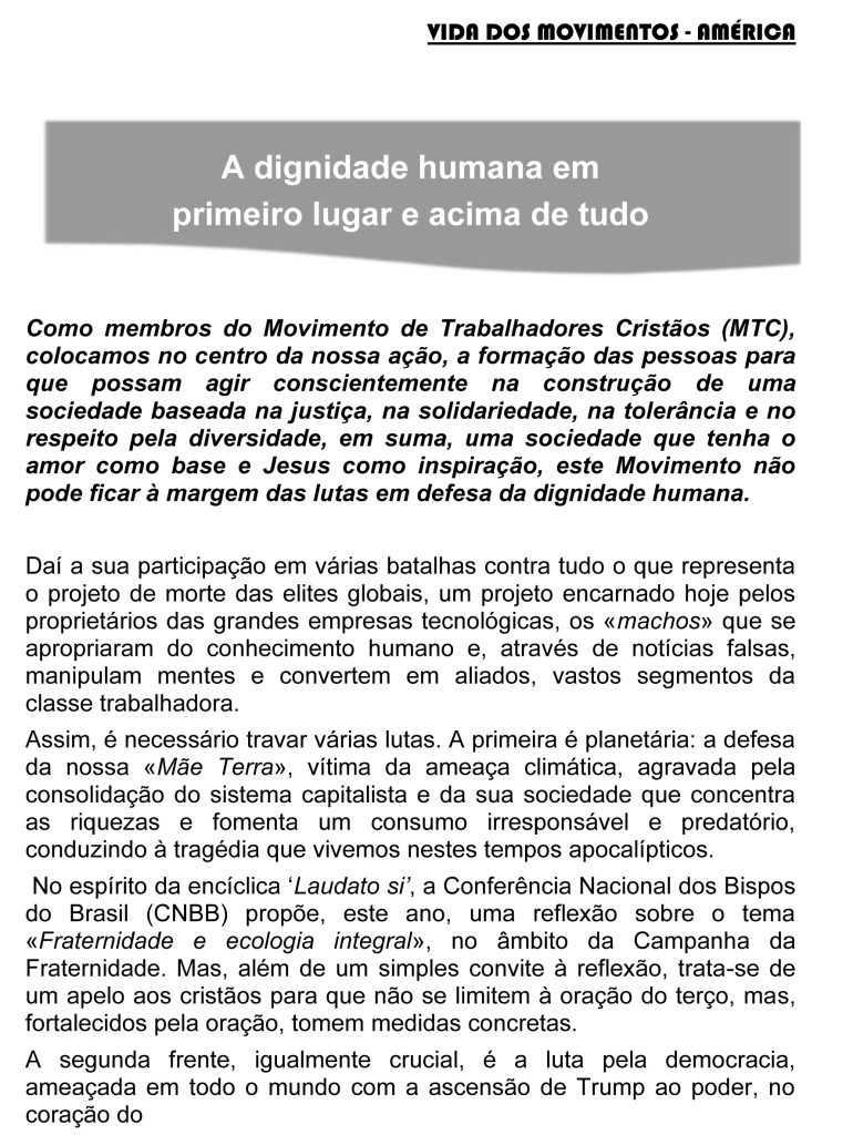 Mensagem para o Dia Mundial pelo Trabalho Digno 2025