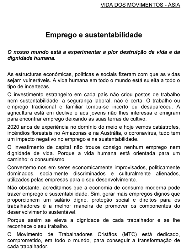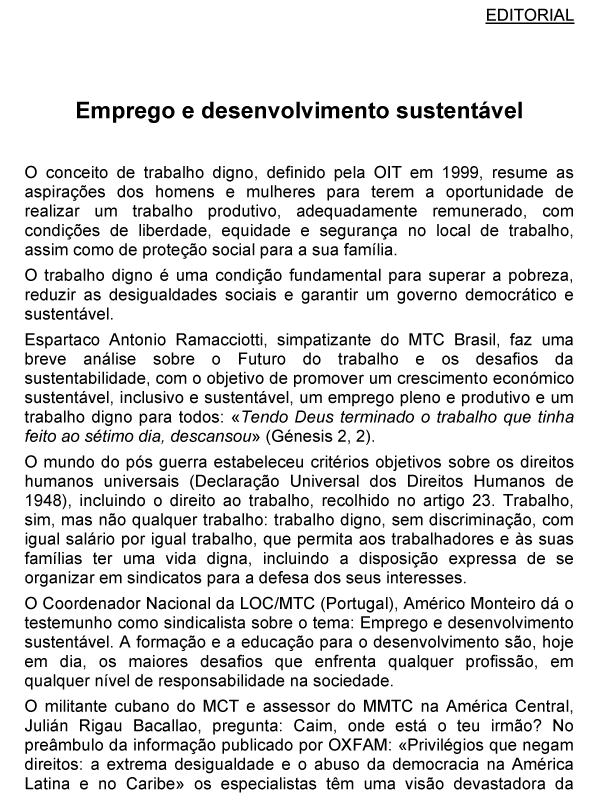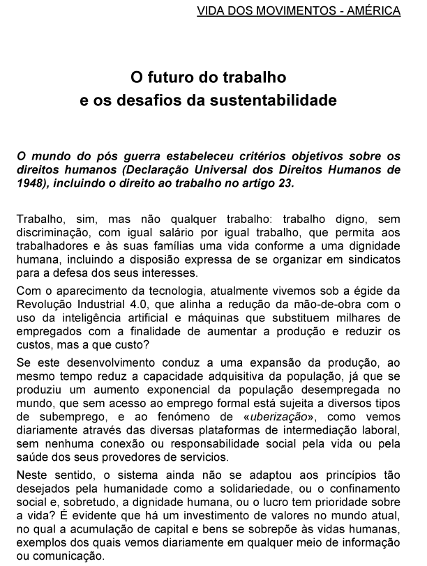 Mensagem para o Dia Mundial pelo Trabalho Digno 2025